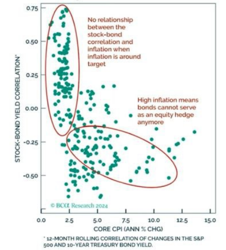즉, 높은 인플레이션 상황에서는 주식과 채권의 가격이 동행하므로