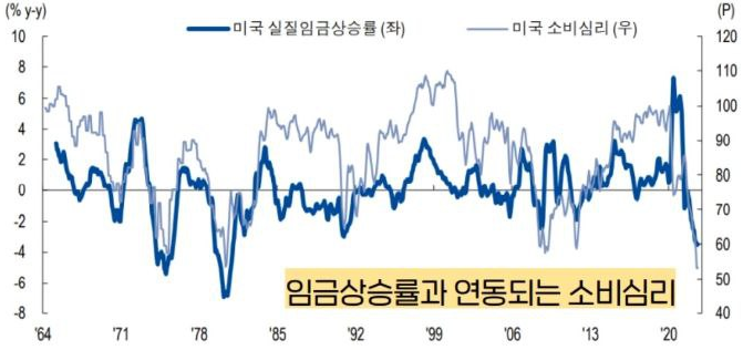 소비자의 구매력을 가장 잘 표현하는 지표는 임금상승률에서 물가상승률을 뺀 실질임금상승률입니다.