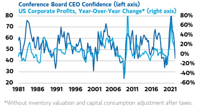 실제로 CEO 신뢰지수는 전년 대비 미국 기업의 이익 증가율과 동일한 움직임을 보입니다.