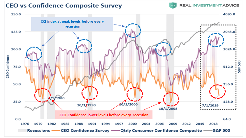 따라서 CCI는 피크 부근에 있고, CEO 신뢰지수는 50밑으로 떨어지는 상황이라면