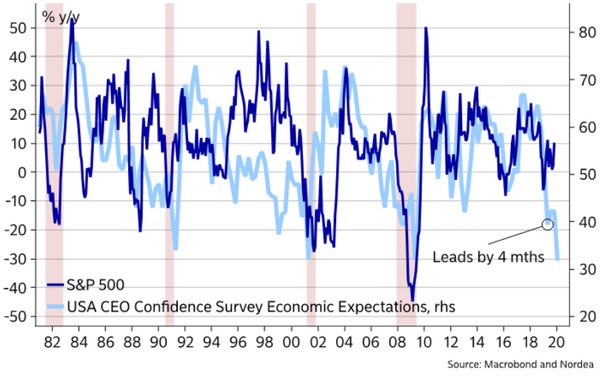 아래 그래프는 19년 말까지의 데이터인데 그 당시 CEO 신뢰지수는 크게 급락한 반면