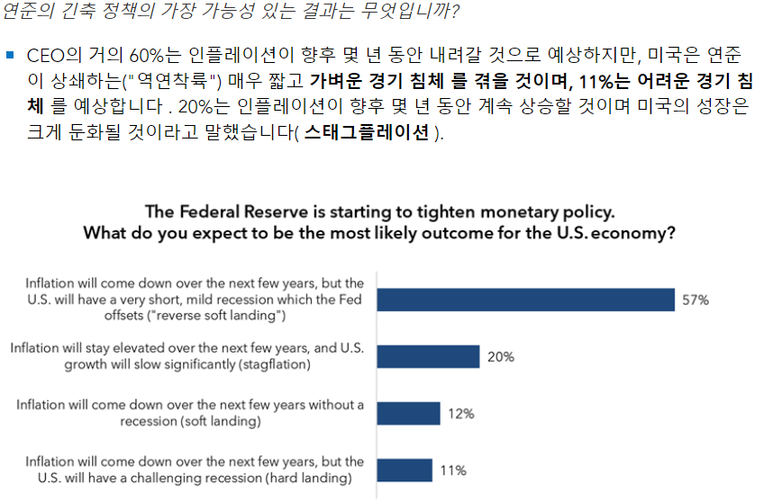 최근의 상황은 22년 2분기에 CEO 신뢰지수가 42로 낮아졌고,