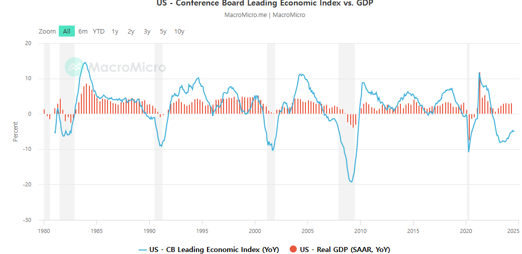 참고로, US Leading Index MoM (investing.com)에서는 LEI의 전월 대비 변화율을 확인 가능합니다.