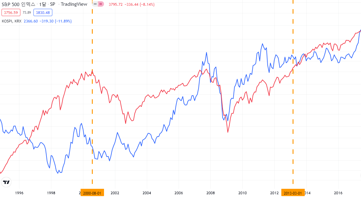 누구나 다 인정하고 좋아하는 미국 S&P500도 닷컴버블의 정점인 2000년 8월에 샀다면