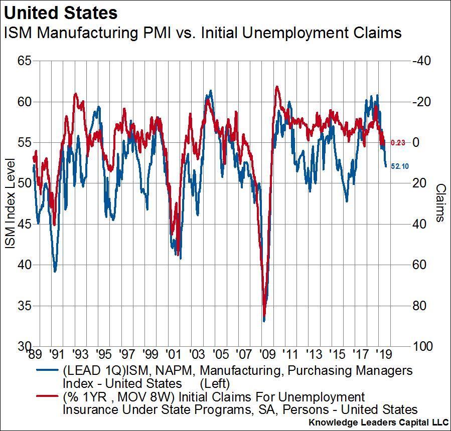 이 두 차트가 굉장히 유사한 흐름을 보이는 것을 알 수 있는데, 이는 신규 실업수당 청구건수가 1분기 정도 후행하여