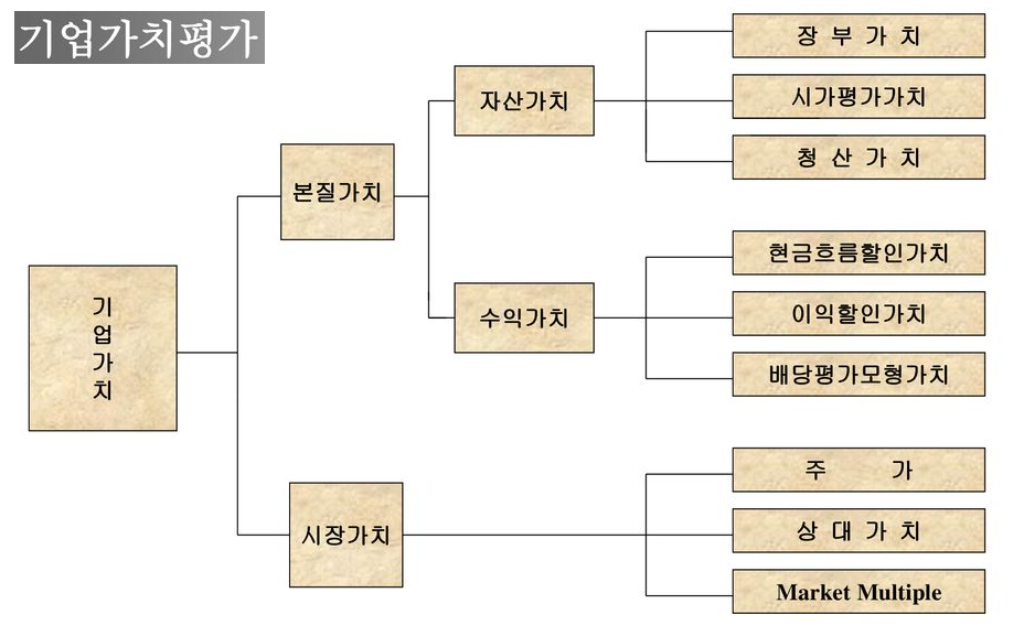 가치평가 방법은 다양한 기준에 따라 분류될 수 있는데 ,한 가지 대표적인 분류는