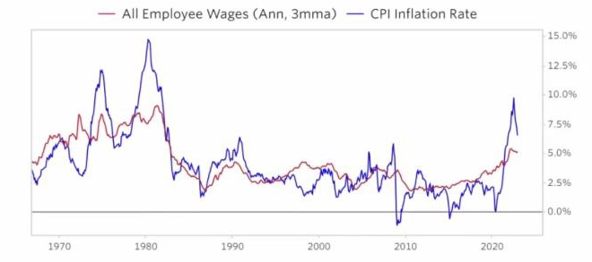 이는 곧 임금상승률의 둔화가 인플레이션을 잠재우기 위해 연준이 해결해야 할 중요한 숙제임을 말해줍니다.