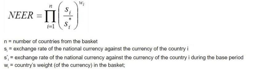 실질실효환율이 100보다 클 경우 기준연도에 비해 해당 국가 통화의 실질적 가치가 절상되었음을 의미하며,