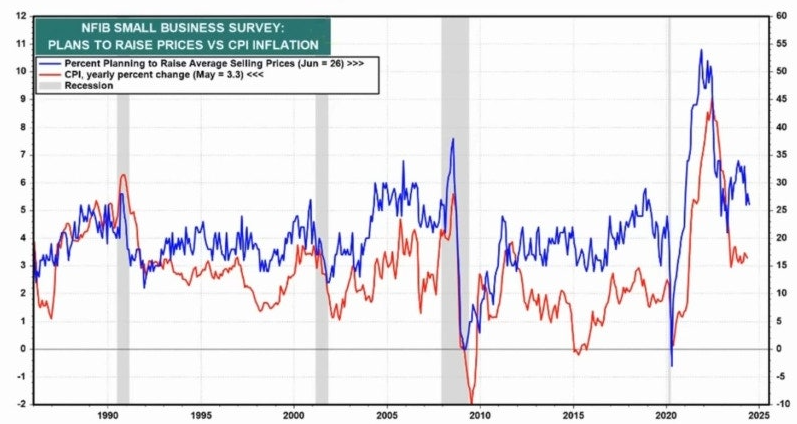 NFIB 설문 항목에는 제품 가격, 비용, 직원 보상 계획 등 다양한 물가 관련 항목이 포함됩니다.