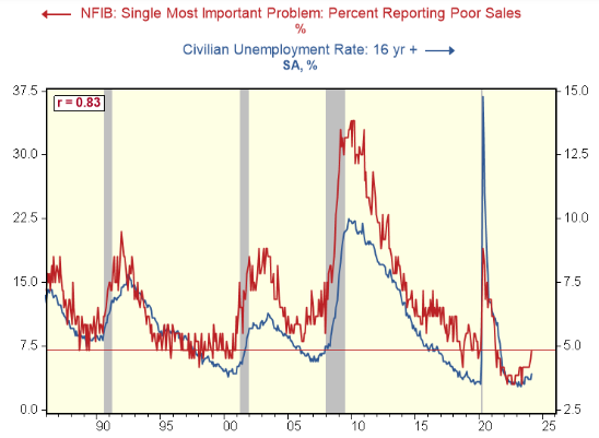 따라서 NFIB 조사의 해당 질문에서 매출 저조를 응답한 사람의 비중은