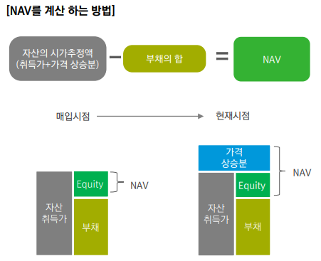 즉, NAV는 리츠의 모든 자산을 매각하고 부채를 반환한 다음 남은 자산을 의미합니다.