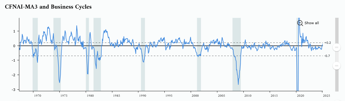 실제로 모든 경기 침체 시기에 CFNAI-MA3는 -0.7을 하회했고,