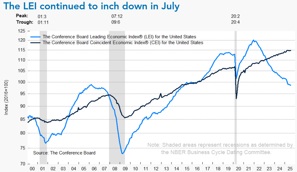 경기선행지수는 ISM 신규주문, 소비자기대지수, 신규 실업수당 청구건수의 부진에 따라