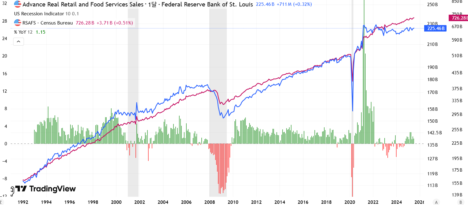 전분기 대비 1% 증가했으며, 인플레이션 조정 시 08년 금융위기 수준에 근접했습니다.