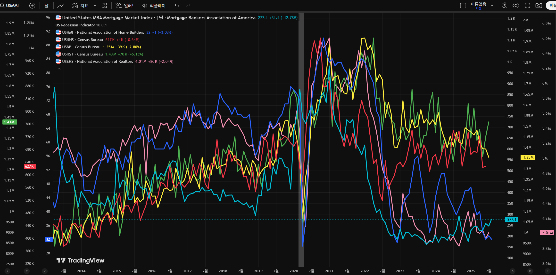 다음으로 주택 시장의 지표들을 확인해 보겠습니다.