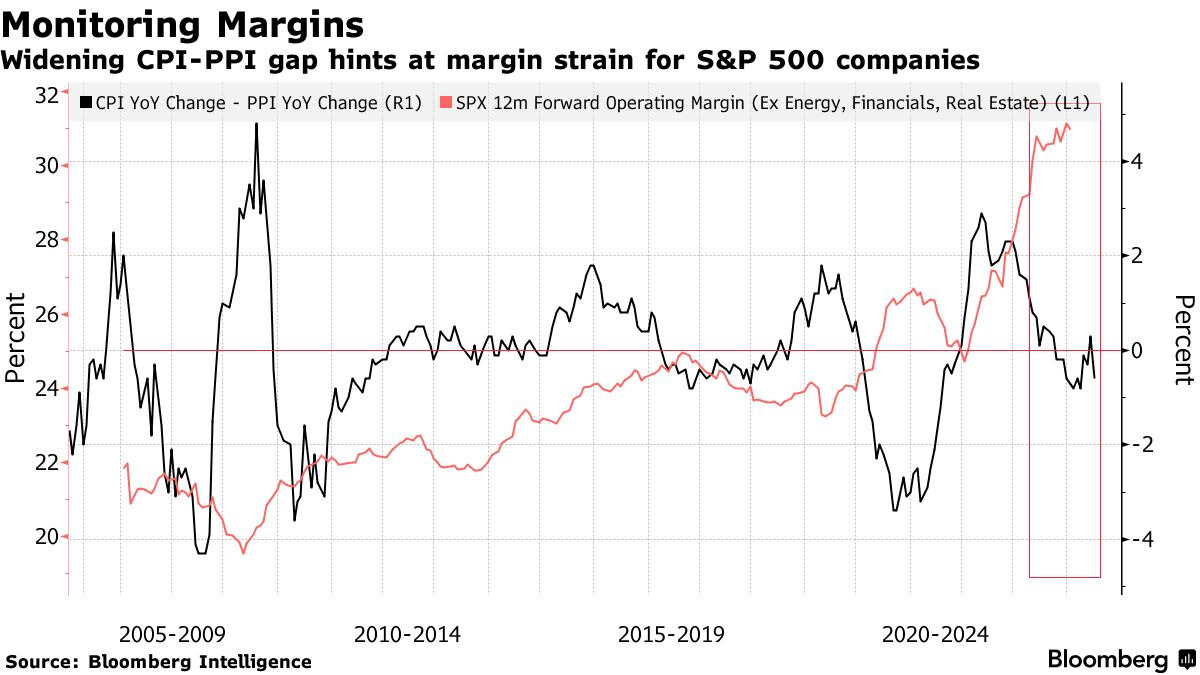 PPI가 크게 상승하면서 CPI-PPI YoY 스프레드는 -0.6%로 낮아졌습니다.