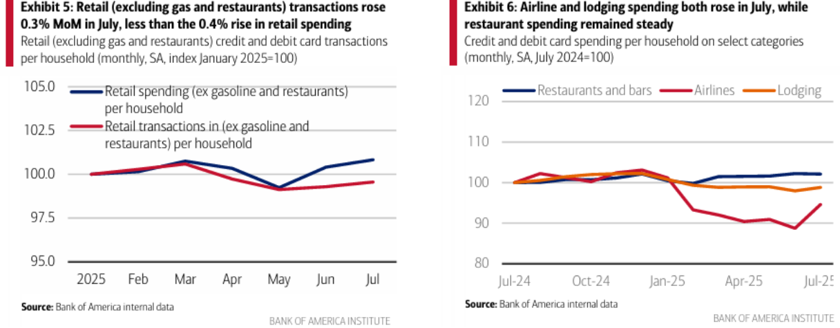 BofA의 월간 카드 사용 데이터에 따르면,