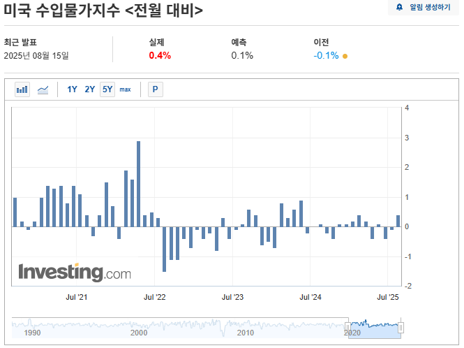 미국의 수입물가지수 또한 MoM 기준 0.0~0.1% 상승이 예상되었으나