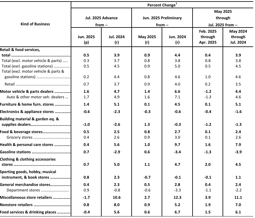7월 소매판매 데이터의 경우는 헤드라인 MoM 수치는 +0.51%로 컨센(0.55%)에 소폭 하회하는 결과가 나왔지만,