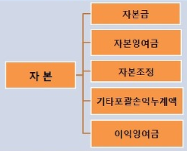자본의 계정은 크게 자본금, 자본잉여금, 자본조정, 기타포괄손익누계액, 이익잉여금 5개로 나눠집니다.