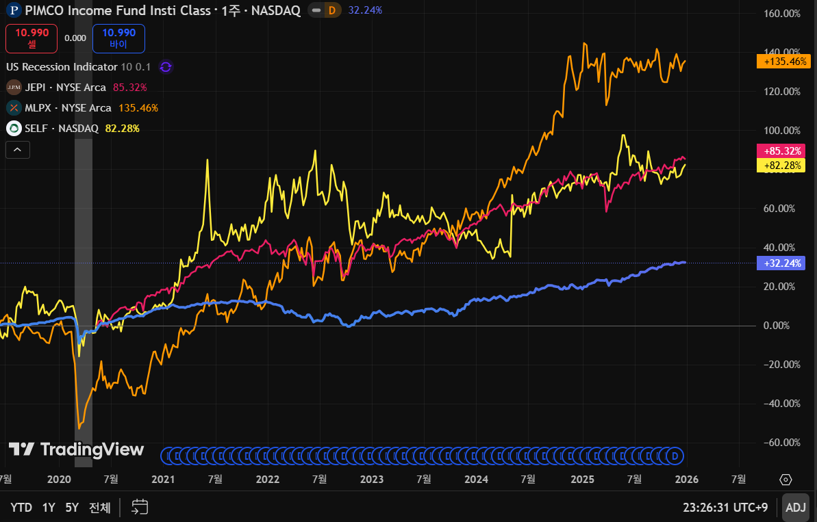 인컴형 채권 펀드(하나PIMCO글로벌인컴혼합자산자투자신탁), MLP 기업 ETF(MLPX)가 있습니다.
