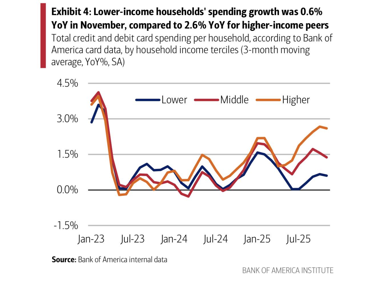고소득층의 지출은 2.6% 증가하며 훨씬 가파른 성장세를 보였습니다.