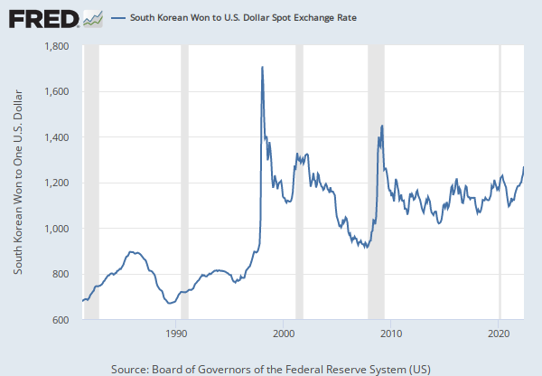 아래 1980년 부터의 원-달러 환율 그래프를 보면 전체적으로 우상향하는 경향이 있으며,
