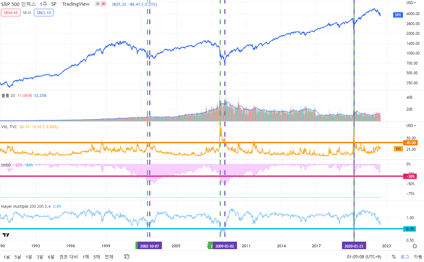 제가 생각하는 S&P500의 찐바닥신호는 다음과 같습니다.