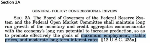 연방준비법에 규정된 Fed의 정책의무는 '최대고용'과 '물가안정'이라는 두 가지 큰 목표(dual mandate)와