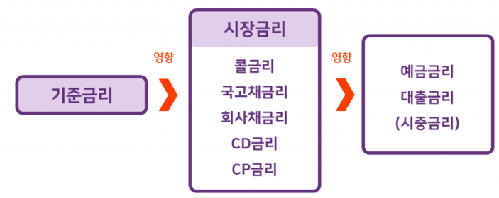기준금리가 발표되면 시중은행을 포함한 금융기관들이 이를 기준으로 각자 나름의 금리를 책정하게 됩니다.