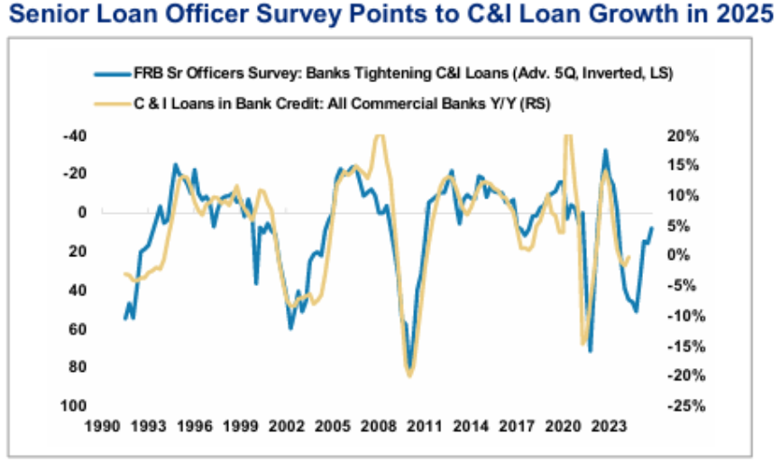 은행이 기업과 산업체에 제공하는 대출(C&I Loans)이 증가하게 되는 영향을 미치게 됩니다.