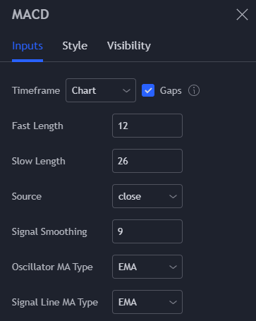 - 가장 보편적인 셋팅은 (12, 26, 9)이며, 가끔 (10, 20, 9)를 쓰는 사람도 있습니다.