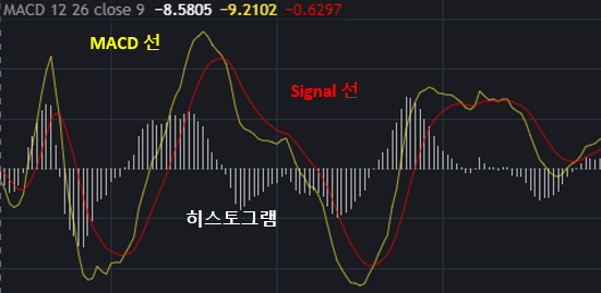 MACD : 단기 이동평균선 - 장기 이동평균선