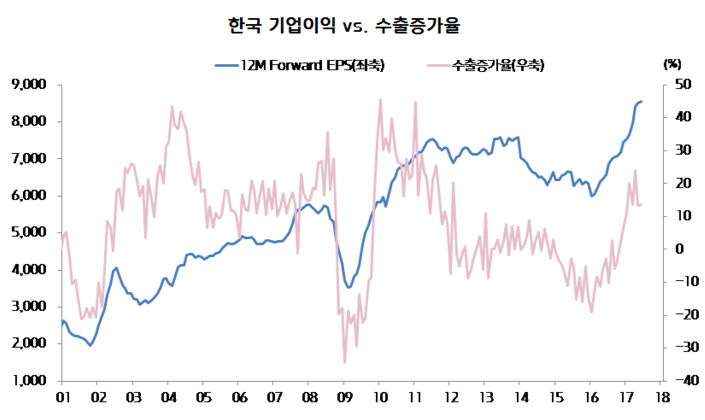 실제로도 선행 EPS 증가율과 수출증가율도 비슷한 추이를 나타냅니다.