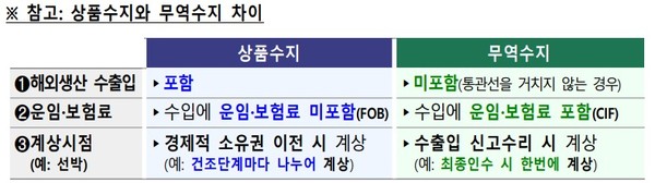 엄밀히 따지면 수출입 인도조건이나 집계범위, 계상시점에 약간의 차이가 있습니다.