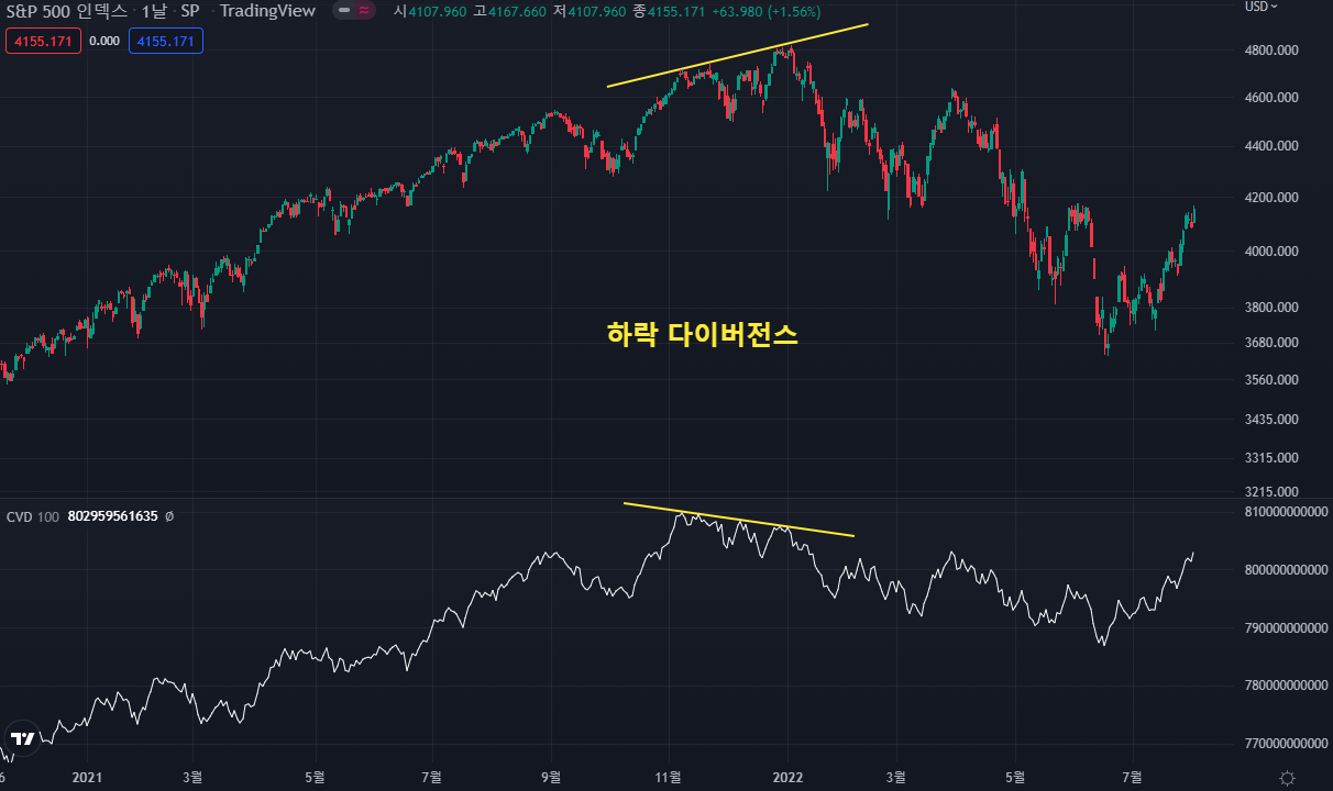 따라서 CVD는 당연히 가격차트와 비슷하게 움직이는 경향이 있으며