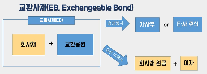 교환사채(exchangeable bond, EB)는 기업이 보유하고 있는 자사주나 타기업의 주식으로 교환할 수 있는
