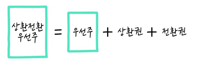 우선주 중에 상환권만 가지고 있으면 상환우선주, 전환권만 가지고 있으면 전환우선주라고 합니다.
