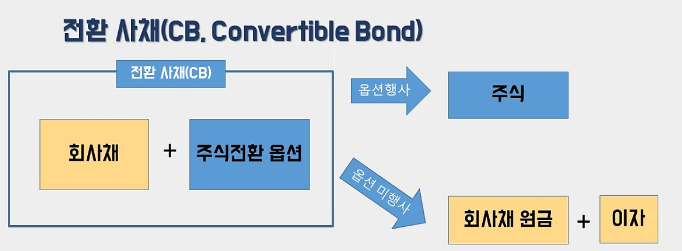 전환사채(convertible bond, CB)는 소유자가 만기 이내에 자유롭게 주식으로 전환할 수 있는