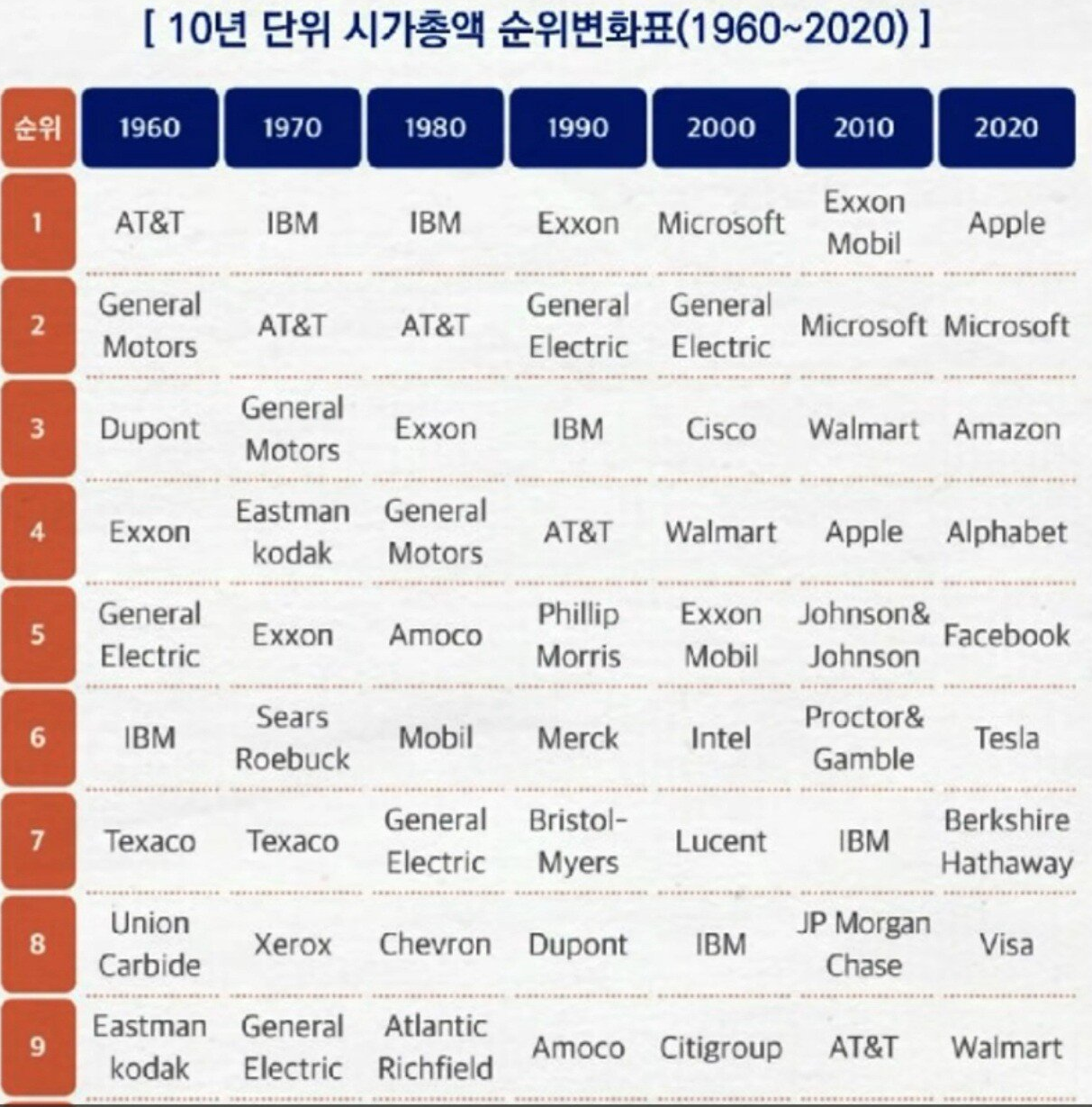 지금 생각하기엔 애플, 마이크로소프트, 아마존, 구글, 페이스북, 테슬라, 삼성전자 등등 영원할것 같죠?